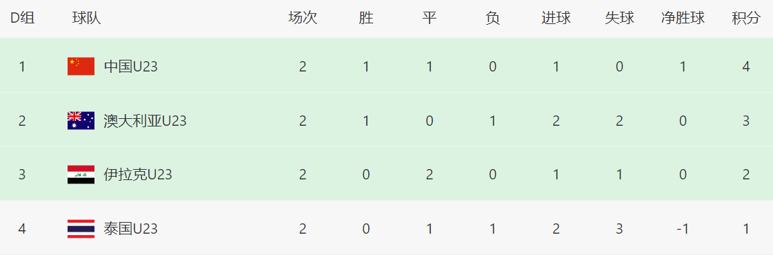 由于同组的伊拉克队1-1被泰国队逼平,中国队凭借4个积分升至小组第一,出线形势一片大好。