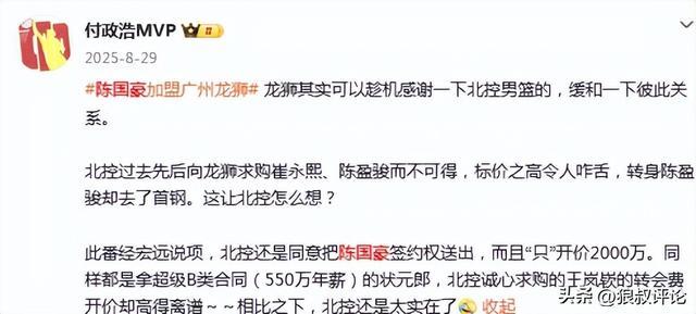 今年夏天,广州龙狮早早就传出有意得到陈国豪,但与北控的转会费方面,一直未能达到预期,后续随着广东的加入,至此解决了这个影响陈国豪转会的问题。